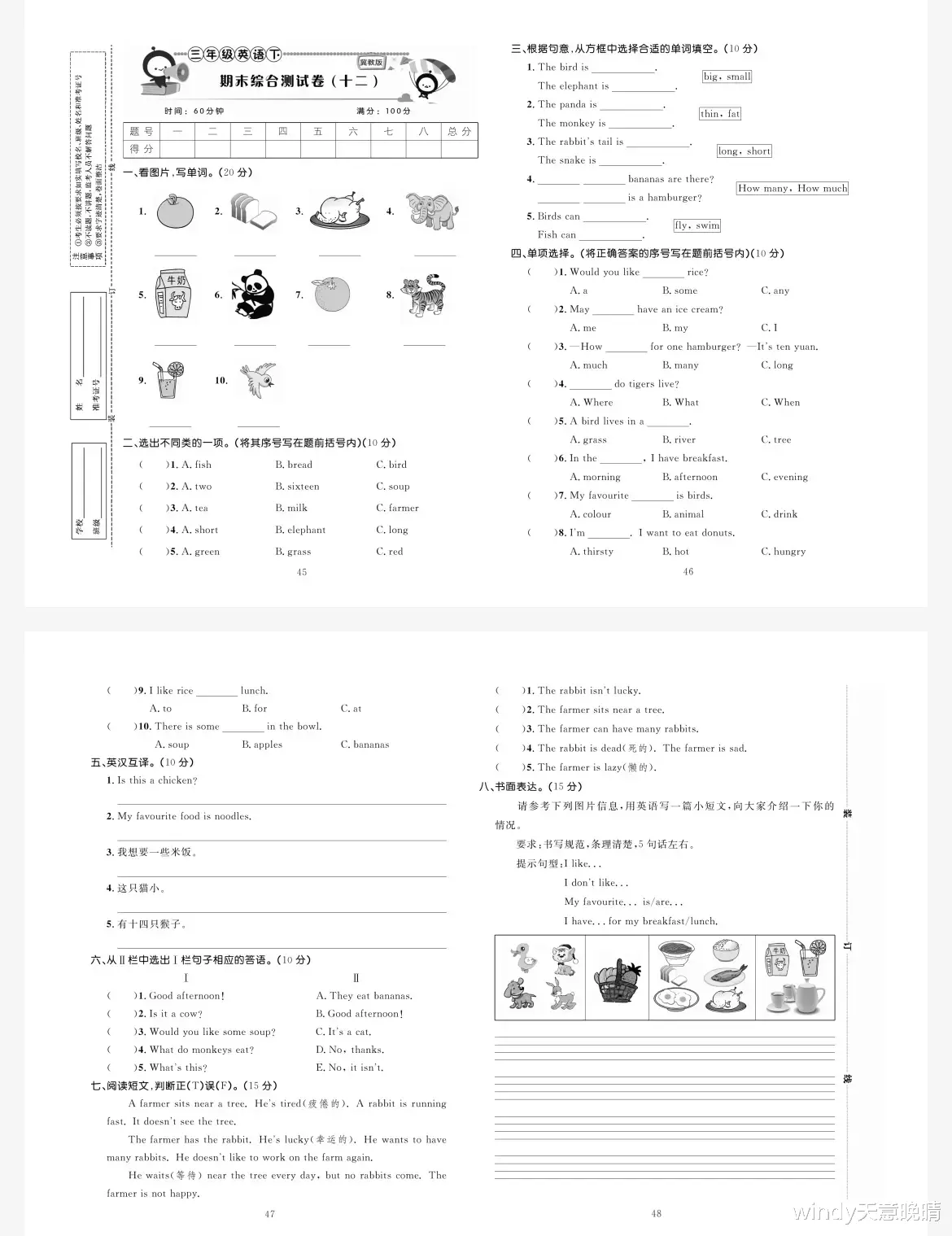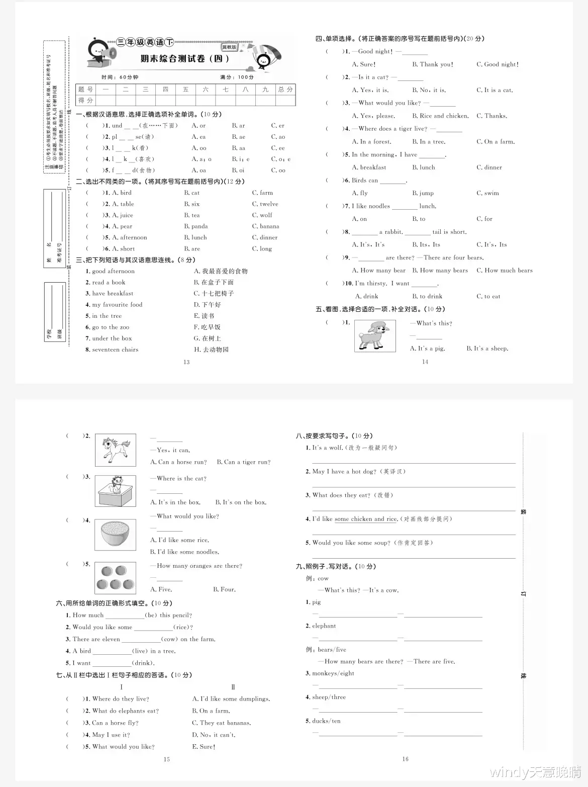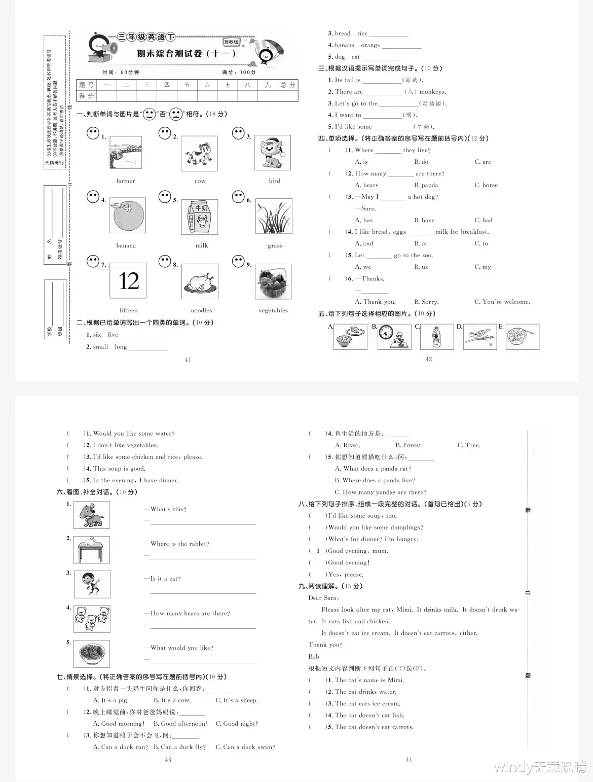 重点练图片匹配题和短对话回答(冀教版听力常考指令如:"Circle the correct picture")。