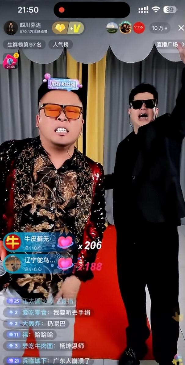 这一下子也是体验到了一把大主播的待遇,四川芬达两兄弟也是极为卖力。