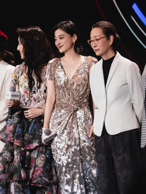 梅婷这次选择了一条小礼服款式的鱼尾裙,裙子上的亮片采用了丝绒面料,看起来高级而不廉价。