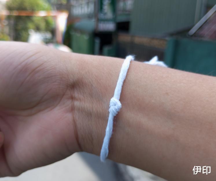 纯白的一根绳子,他亲自帮我们系在手上,与五色绳相似的寓意,只是颜色不同。