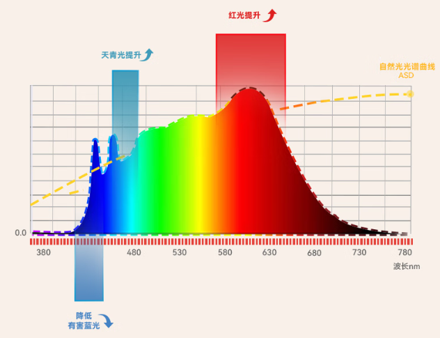 ✅通过更合理的光谱结构,减少对眼睛刺激性强的波段;