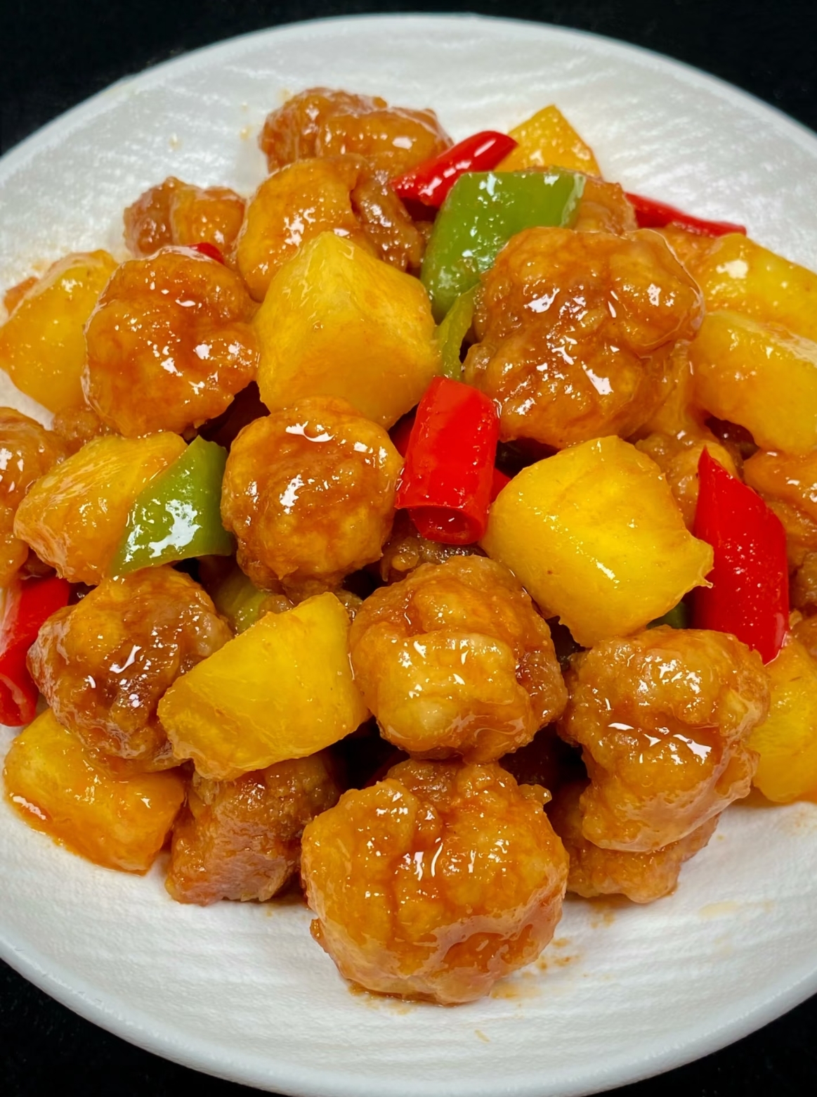 孩子的味蕾天生偏爱纯粹的酸与甜,而菠萝咕咾肉恰好精准地踩在了这个味觉点上。但这道菜的魅力远不止于口味,它更像是一场视觉与嗅觉的盛宴。金黄的菠萝块、翠绿的青椒、鲜红的红椒,搭配上裹着晶莹酱汁的肉块,光是看着就让人食指大动。这种丰富的色彩组合,不仅能激发孩子的食欲,更在潜移默化中引导他们接受多样化的食材。很多时候,孩子拒绝吃饭是因为饭菜的平淡无奇,而菠萝咕咾肉则用它活泼的长相和开胃的性格,轻松打开了孩子通往美食世界的大门。看着孩子指着盘子说“我要吃那个黄色的菠萝”时,作为家长的欣慰感无以言表。