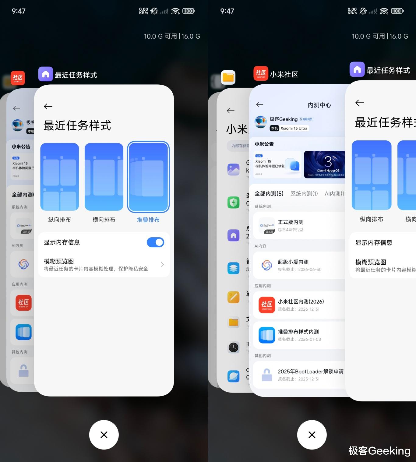 此外,关于小米手机非常值得关注的还有最近悄悄推出的最新第三版「堆叠任务后台」,现在装上「堆叠后台桌面」内测版 App 就能立即体验!