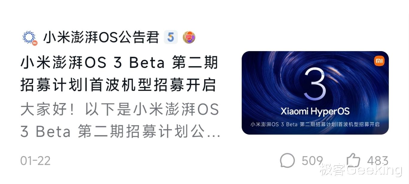 就像初代和澎湃OS 2,这次极客君依然做了一个在线文档,持续更新小米澎湃OS 3 的系统包下载链接,包括 Beta 版和正式版,关注我并私信发送口令 “澎湃OS3” 即可获取。