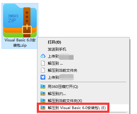安装步骤:1、得到压缩包之后,鼠标右键解压,点击【解压到Visual Basic6.0安装包】。