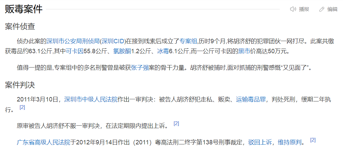 2010年4月,当深圳警方冲进罗湖区某餐厅时,胡济舒正与手下清点毒品。面对当年亲手抓捕张子强的老刑警,他苦笑道:“又见面了。”警方从其窝点搜出55.8公斤可卡因、6.1公斤冰毒,这个曾逃过死刑的“智囊”,最终被判死缓,余生将在铁窗中忏悔。