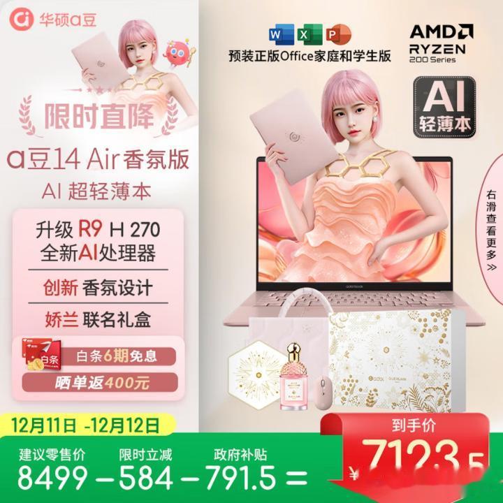 高颜值加上超强性能,如果你现在恰好想为自己购入一款轻薄且能兼顾高效办公的笔记本,华硕a豆14 Air香氛版将会是你目前一个不错的选择。甚至还附赠闪光礼盒,内有定制云朵电脑包、定制无线鼠标、定制星芒鼠标垫,以及一瓶娇兰奇迹花园淡香水75mL。