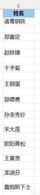 给下图 1 的每个姓名之间分别添加一个空行,效果如下图 2 所示。