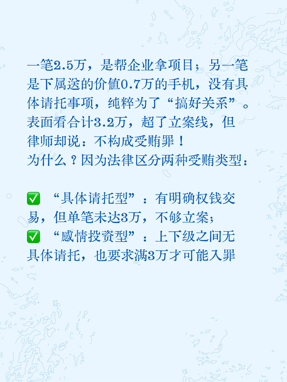 杭州留置律师钱小琴:一起看似超3万元的“贿赂案”为何最终不构成受贿罪?律师详解“具体请托型”与“感情投资型”受贿的本质区别,揭示法律不是简单算术。