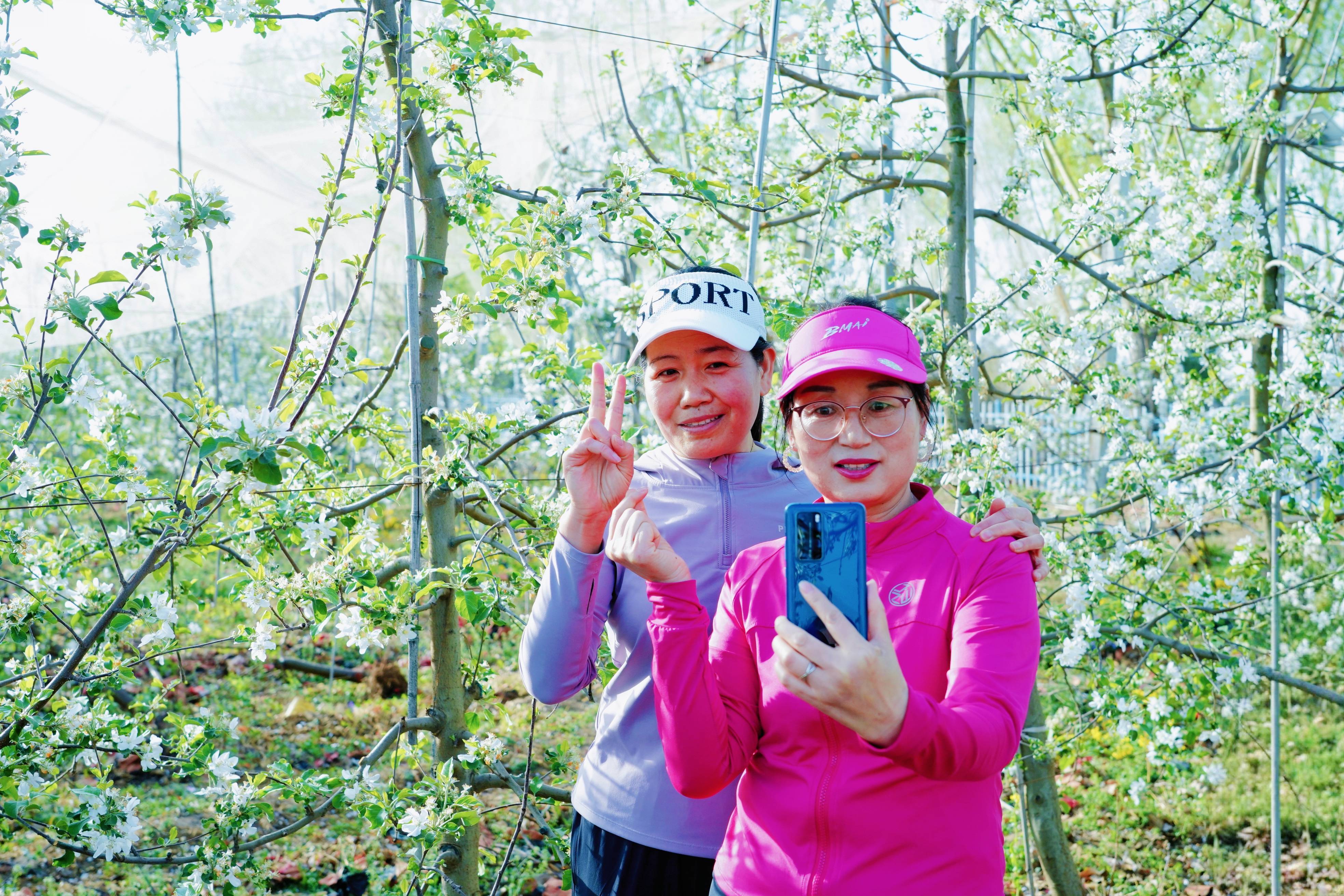 在苹果园区,果花挂满枝头,微风拂过,花枝摇曳,花瓣如雪般飘落,美不胜收的场面吸引了大批游客前来,他们穿梭在花海之中,脸上洋溢着陶醉的笑容,纷纷拿起相机、手机,变换着各种角度,捕捉着苹果花的美丽瞬间。