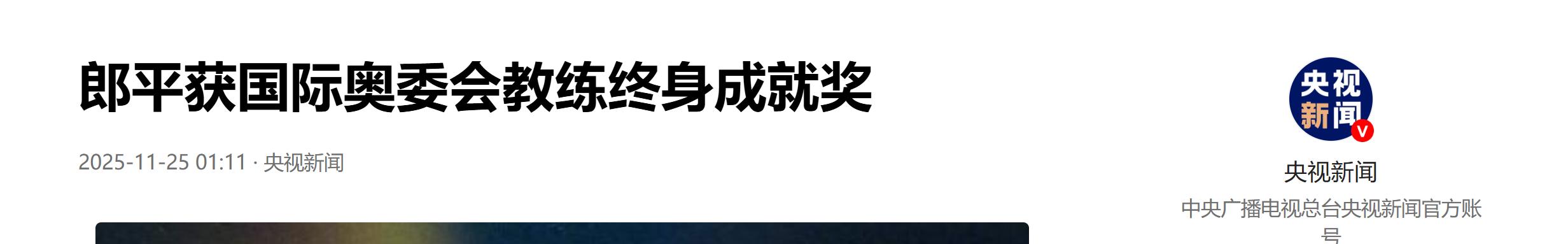 2025年11月,国际奥委会宣布授予郎平教练终身成就奖。这是该奖项设立以来首次颁给中国排球教练。