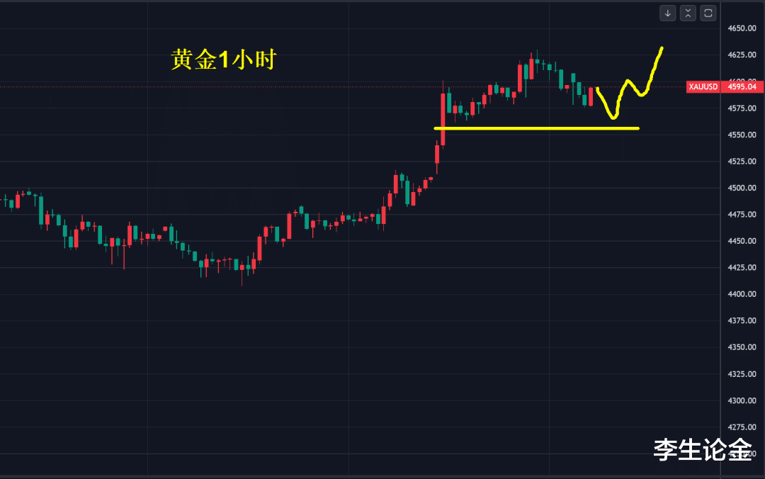 向内求,不是往里钻,是为了“站住”不被外面的诱惑牵制,给自己的反应加一套“过滤器”。以前是:外界刺激—本能应激—行动——结果。现在要多一个环节:外界刺激—站住(观察)—过滤—行动—结果。这里里的“站住”不需要每次都对,只要它出现,你的思考结构就变了,不再完全被外界(行情)牵着走。你不是情绪本欲望与冲动本身,更不是分裂出来“观察者角色”,而是那个能回到位置的存在,站住,看见,选择,站住不是逃离行情和生活,也不是钻进内心深处,而是“回到“驾驶位”。试着让自己做选择前“站住”思考3秒,深呼吸一次,你会明显感到舒服,因为你从原来“被动被推”变成了“主动选择”。下单之前,交易之时中间“停留”几秒,你的内心会感受到:我不是被迫的,不是被牵制的,而是参与过决定。站住了,但还是被牵着走,这很正常,因为旧模式不是一次能断掉,你更不需要每次都赢(站住),而是站住的次数越来越多,被外界冲走的越来越少。一个更深的理解,外界发生的一切(行情,信息,诱惑,别人赚钱)过去像命令,你必须回应,现在训练你的是外界只是信息,不是命令,这就是向内看的本质,记住不是往里钻,是回到主权,站住后过滤完再行动。当你懂得决定前的“站住”,下一步每次只做一个动作就够:交易的时候不满足条件不下单,人际关系先复述再回应,手机每次拿起来只做一件事。不再用因果看行情,而是站在结构层,因果会错,结构不会。说一下今天黄金行情:周一受避险情绪推动黄金跳空高开上涨至4630美元,连续两个周末都被特朗普点燃市场情绪,他没有成为竞选时承诺的地缘风险结束者,反而是地缘风险发起者,对于黄金的上涨功不可没。另外,美联储主席鲍威尔收到刑事传票,眼看着就要结束任期享受老年生活了,却成了美国历史上美联储主席在任期间被刑事指控的特例,双重作用下黄金市场开启疯涨模式,而突破4550-60美元之后这里成了周一回落确认关键支撑,也是我们昨晚内部直播强调做多的区域。