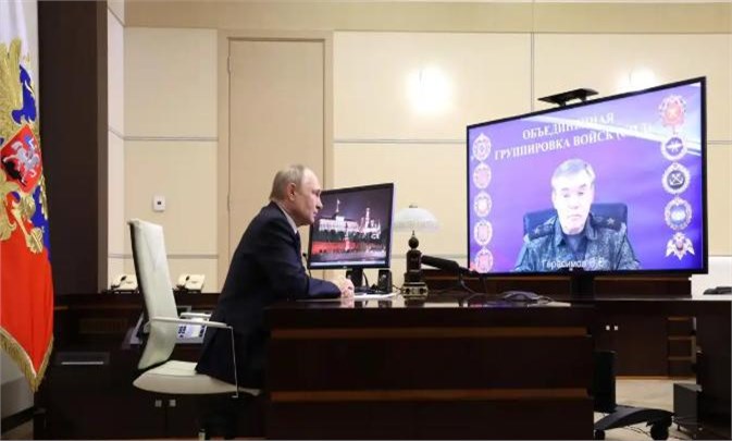 俄罗斯总统普京在听取俄武装力量总参谋长格拉西莫夫的汇报
