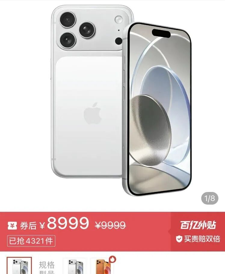 但想用8999元抢到也没那么容易,得手速快、领到券才行。我亲自试了,热门256GB版本是真难抢,512GB的还好一点,毕竟买的人少些。另外还有个细节:在这些平台上买的iPhone 17 Pro Max,很多是要当场激活的,所以如果你想买了送人,可能就不太方便。