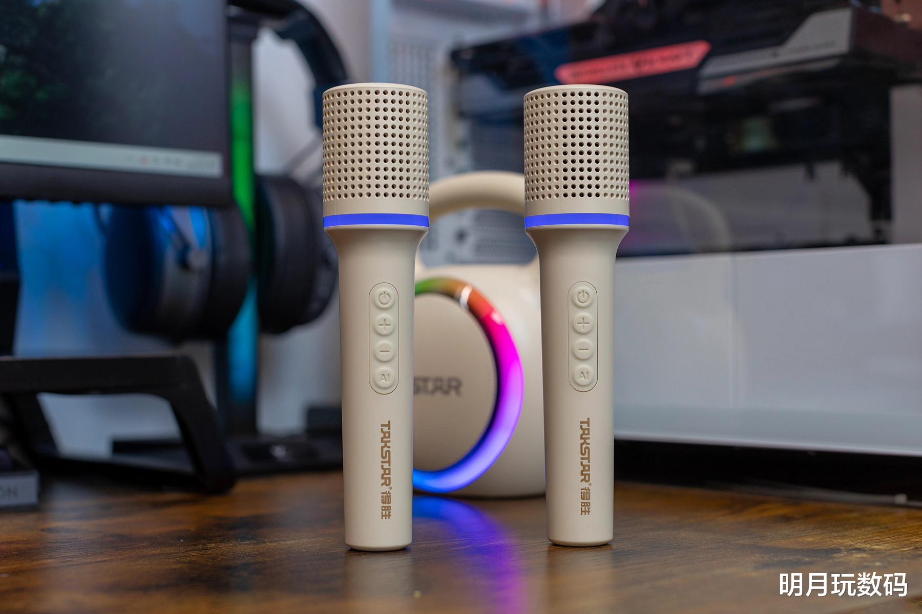 值得一提的是,得胜H2除了内置多款音效外,还支持一键消原唱的功能。只要长按话筒的AI键就可以消除原唱,不用特意的找伴奏就可以畅游KTV功能。而且,标配了两个话筒,对于家里有两个孩子的也不会去争抢。并且还非常适合朋友聚会或是家庭对唱K歌使用。