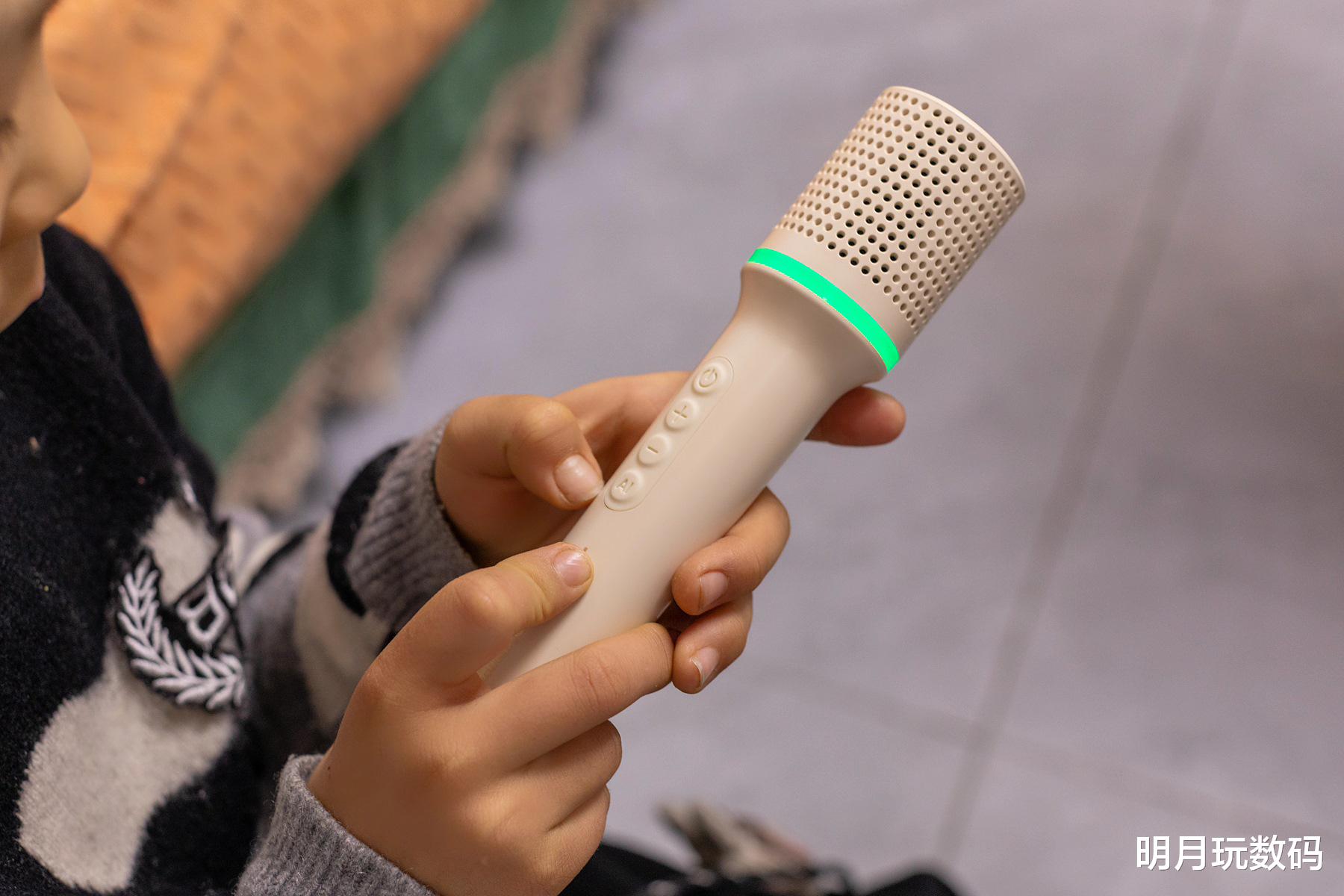 当然,这款音箱不要看它体积小,在音质表现上,得胜H2采用了专业级音频处理技术。内置的15W全频扬声器能够输出清晰透亮的声音,特别是低音和环绕效果都要比普通音箱更为出色许多。而且话筒还支持原声、专业、KTV、主持、卡通和怪兽等多种音效模式,孩子最喜欢切换到卡通和怪兽模式,跟着音乐哼唱时的变声效果能让孩子开心无比,也激发出了孩子对音乐的热爱。