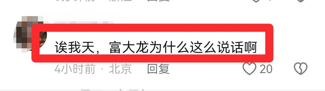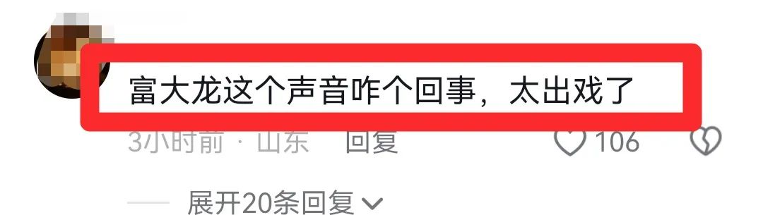 有网友说,“我天,富大龙为什么这么说话啊”“富大龙这个声音咋个回事,太出戏了”。