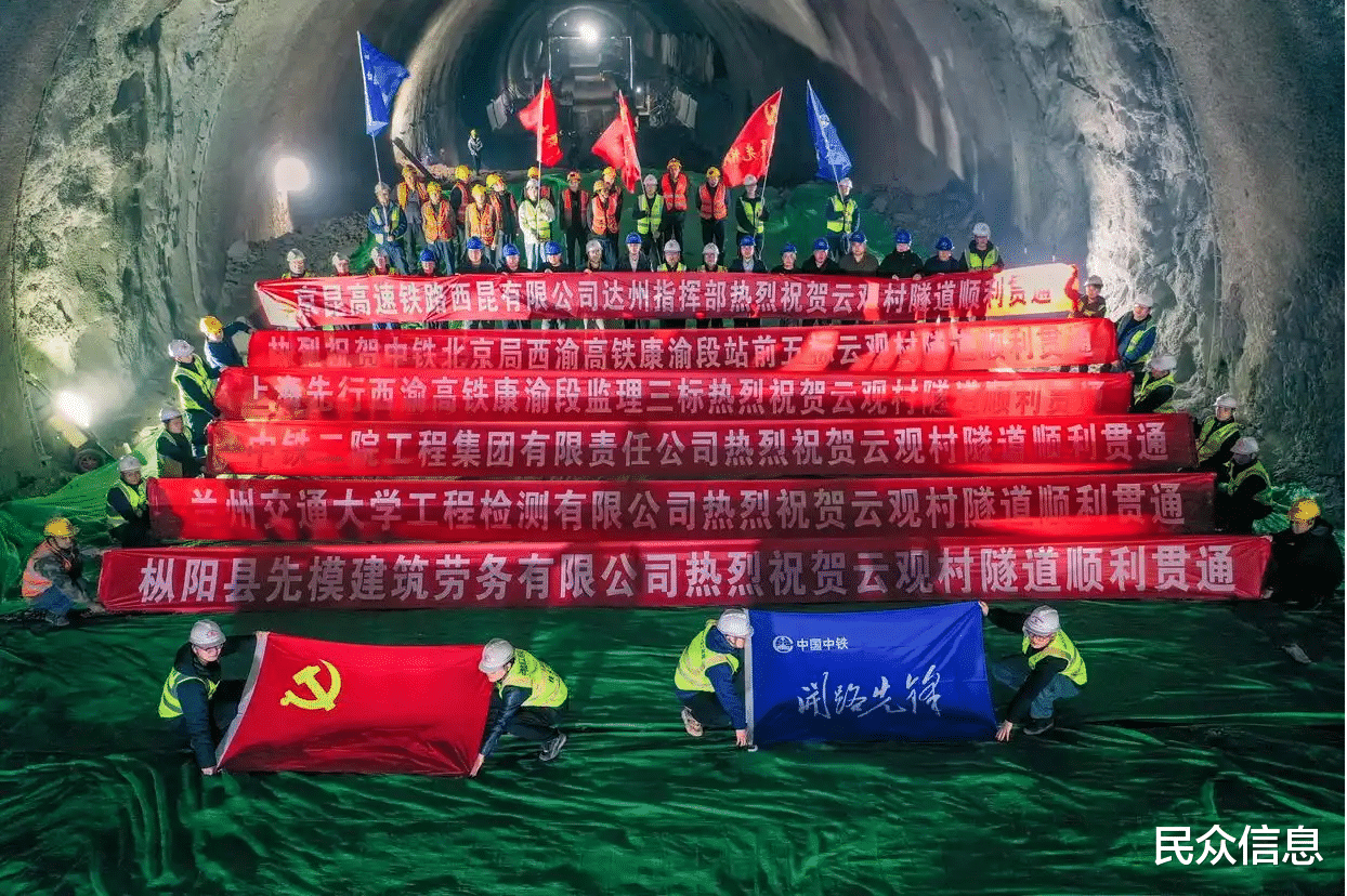 2026年1月5日,中国中铁旗下中铁北京局承建的西安至重庆高铁安康至重庆段(简称西渝高铁康渝段)云观村隧道贯通。云观村隧道是西渝高铁康渝段控制性工程,位于四川达州宣汉县境内,全长6215米,设计为单洞双线,时速350公里。