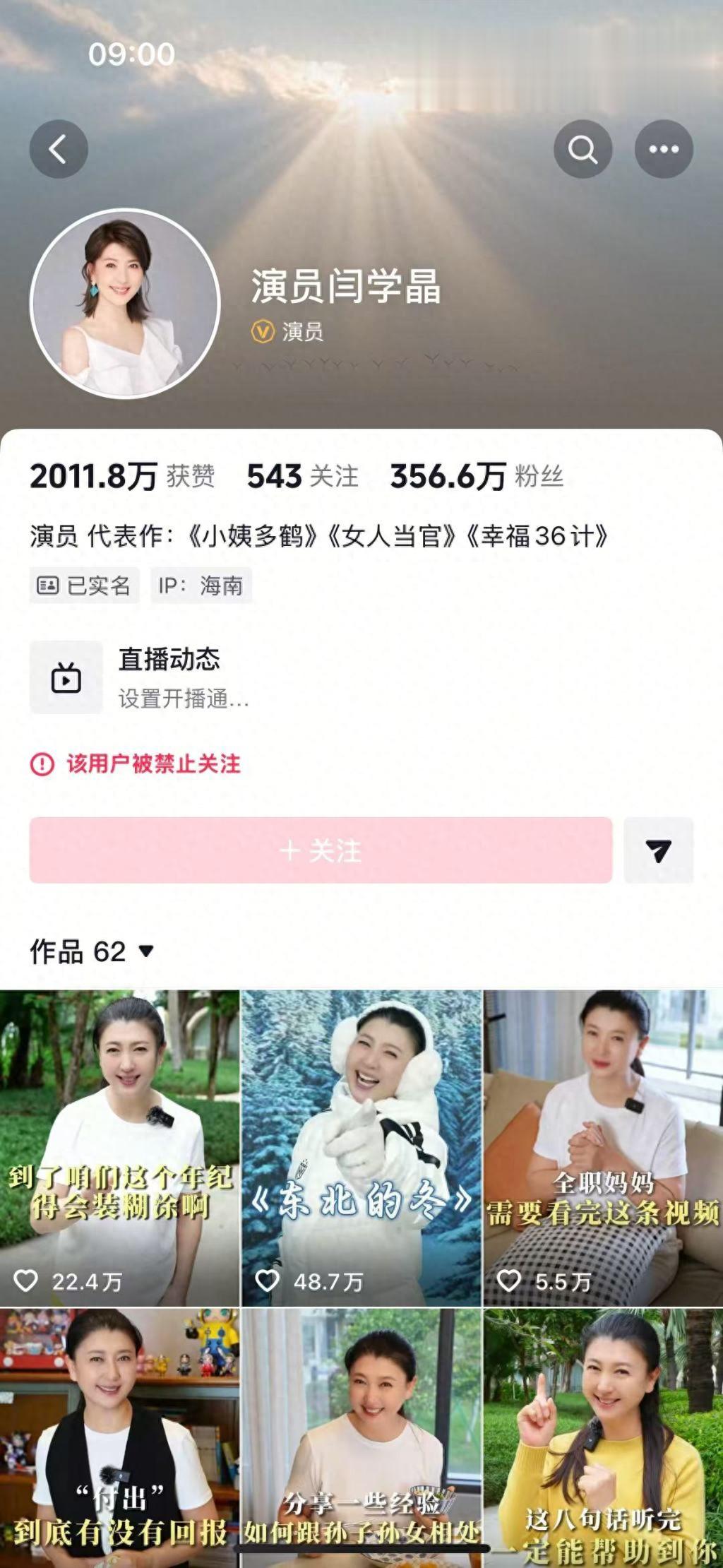 1月10日,澎湃新闻报道显示,闫学晶在抖音和快手两大核心短视频平台的账号,均已被禁止关注。