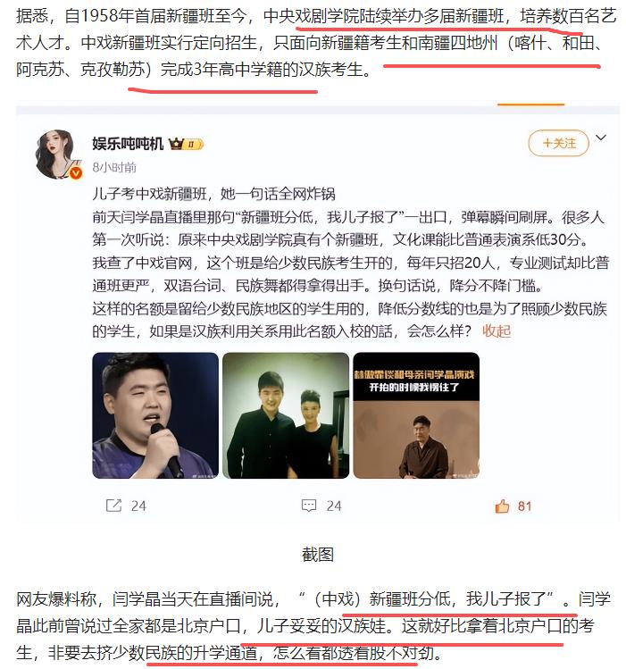 前文提到过,闫学晶称自己全家都是北京户口,这就好比拿着北京户口的考生,非要去挤少数民族的升学通道,怎么看都透着股不对劲。