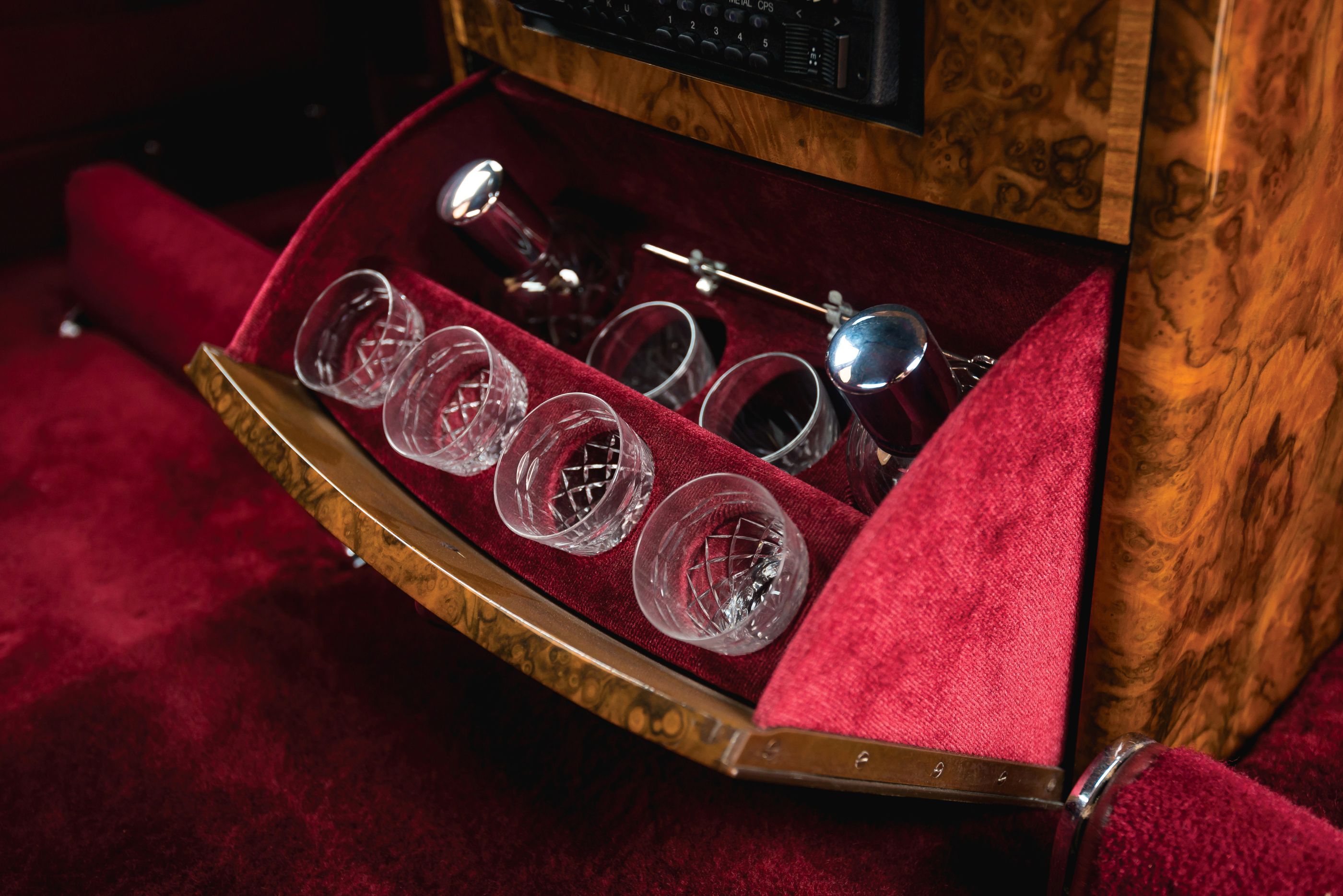 尽管当时车身定制业务即使对于劳斯莱斯来说也是一个小众的选择,而幻影VI为这一历史悠久的传统工艺提供了适宜的“挥别”。举例来说,七辆名为“Alpha”的“限定礼宾车”看似与其他幻影VI别无二致,但细致观察后会发现其拥有更宽的镀铬车窗饰条,以及胎压高达90psi的16英寸轮毂。这些改动是为了搭载5毫米厚的玻璃和7毫米厚的装甲防护板,从而使后排座舱既防弹又防爆。然而,驾驶席并不具备同等的防护措施。