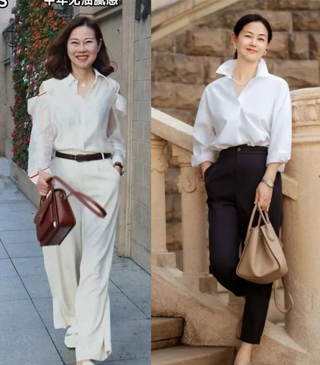 心机二、简约单品,是50+女人的绝佳选择50+女性的夏季穿搭,应以简约单品为主旋律,如衬衫、阔腿裤、长裙都是凸显气质的不二之选。