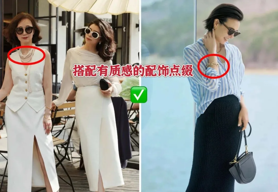 心机三:精美配饰,是中年女性的加分利器一些精美的配饰,堪称中年女人造型的点睛之笔。