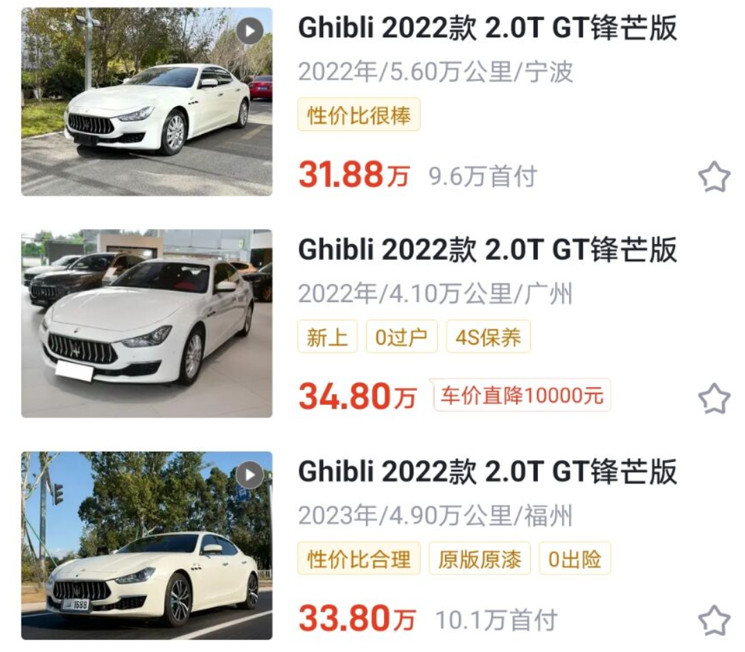 2022年上牌的玛莎拉蒂Ghibli,在车况良好的情况下,车商能给出的收购价,不超过30万。