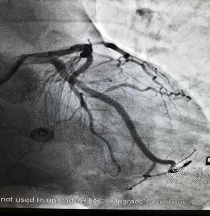 结果一出,术者惊出一身冷汗,我的天呐:三支冠状动脉全部病变:回旋支闭塞,前降支、右冠重度狭窄!