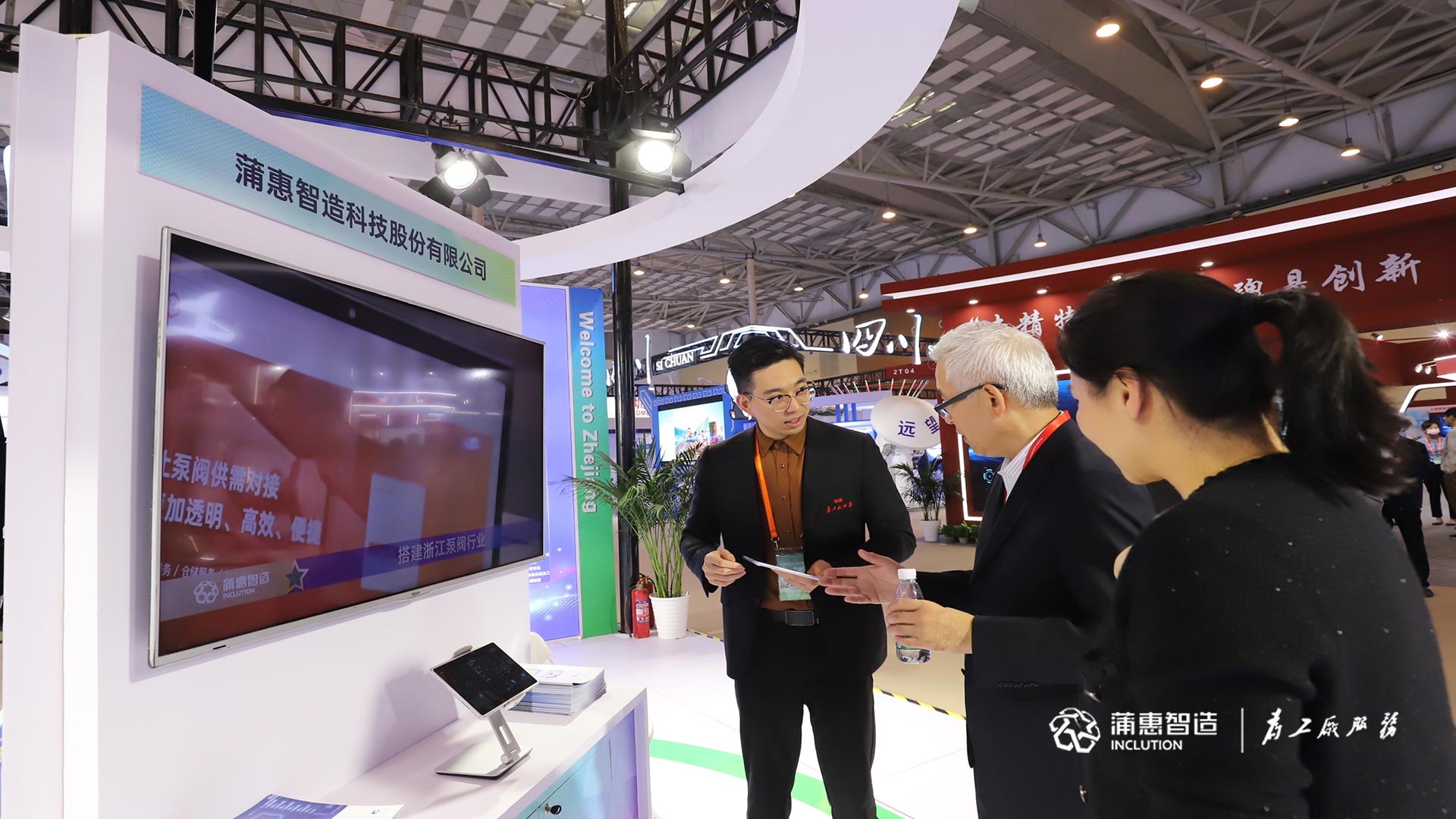 工信部中小企业发展促进中心主任单立坡,中国中小企业国际合作协会副会长赵文智,浙江省“三会”常务副会长岳阳等领导莅临蒲惠展台,与工作人员现场交流,对蒲惠的技术路径和实践成果表示肯定。