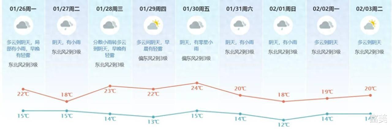 东莞新一波冷空气即将到来!降温之外还会带来降雨!据气象部门消息,26-27日受东南气流影响,有小雨,最高气温下降,昼夜温差减小;28-29日转为阴天到多云,早晚有轻雾,气温逐步回升;31日至2月3日受新一股冷空气影响,气温再次下降,伴有小雨。最低气温将降至12℃左右。大家注意保暖,照顾好自己呀!
