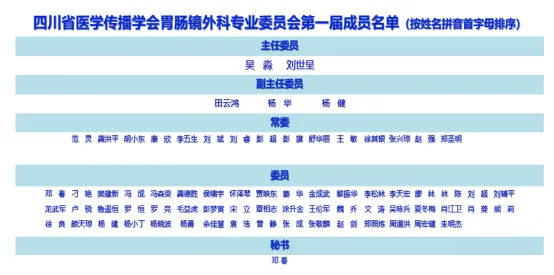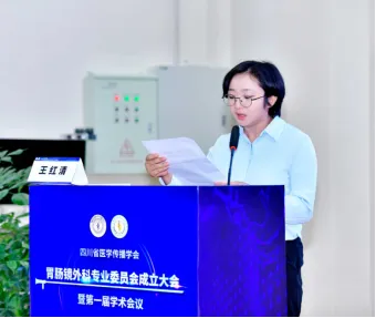 成立大会回顾四川省医学传播学会执行会长兼秘书长刘一泽代表学会理事会、秘书处致辞,他对专委会成立后的工作开展作出要求,希望专委会能够为实现“健康中国”“健康四川”的宏伟事业做出贡献。此后,由四川省医学传播学会组织管理部王红清宣读《关于同意成立四川省医学传播学会胃肠镜外科专业委员会的批复》。
