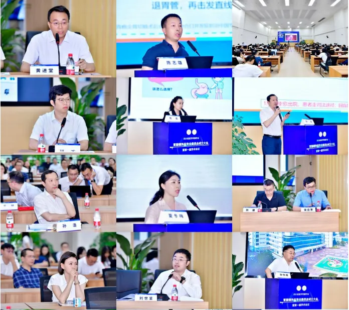学术环节二由潍坊市人民医院孙作成教授、首都医科大学附属北京安贞医院南充医院(南充市中心医院)田运鸿教授、重庆医科大学第一附属医院杨歆教授分别以《双镜…胃肠外科新时代》《外科内镜保障胃肠道手术安全实施》《内镜下的腔内与腔外》为题做专题报告,四川大学华西医院宋应寒教授、成都市第五人民医院刘建教授主持本环节。四川大学华西空港医院康欣教授、成都市第五人民医院杨健、成都市龙泉驿区中医医院龚德胜参与本环节的讨论并发言。
