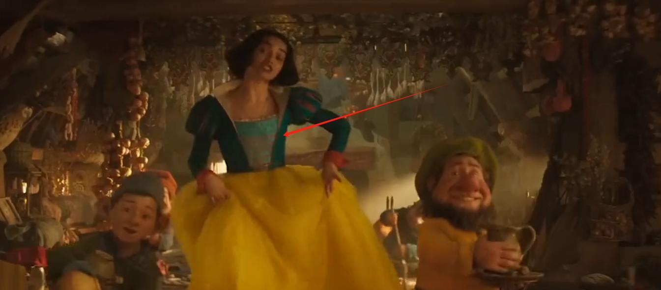 白雪公主从头到尾只有几套衣服,其中一些看起来如同塑料般廉价,而恶毒皇后的造型也极其不符合角色的设定,像是漫威电影中的反派角色。
