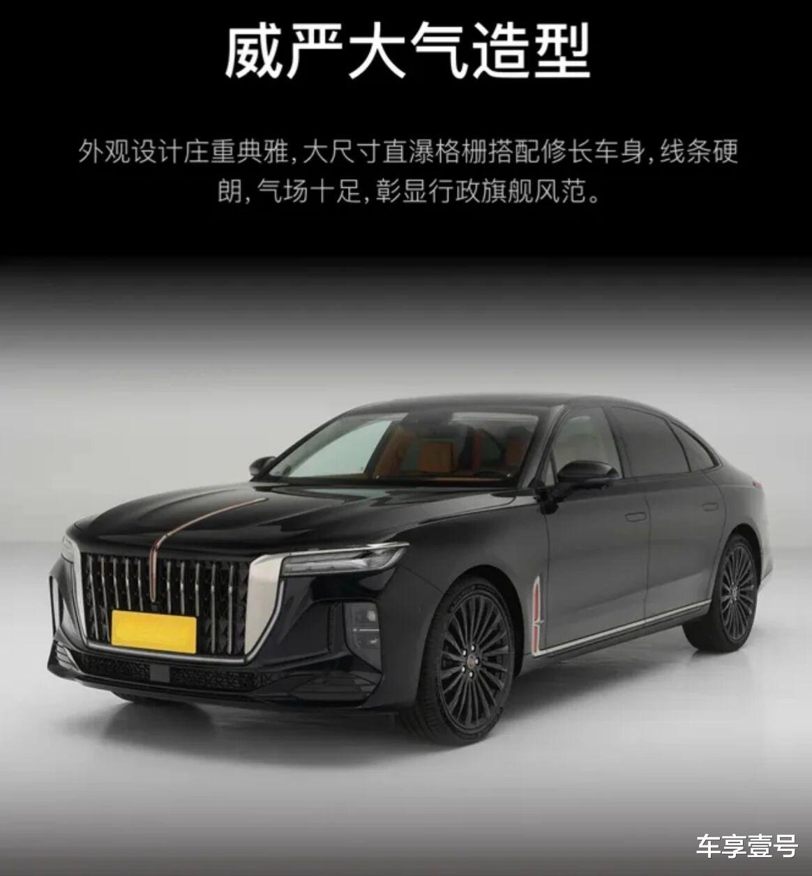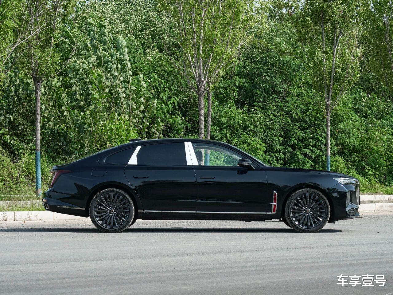 尤其是前面直瀑式的中网格栅,简直就是中国版的劳斯莱斯,配合中流砥柱式的机盖立标,往那儿一站,自带大佬出场的BGM,车身的侧面采用溜背的线条收住尾部,有年轻的动感,也没有丢掉行政车的端庄。