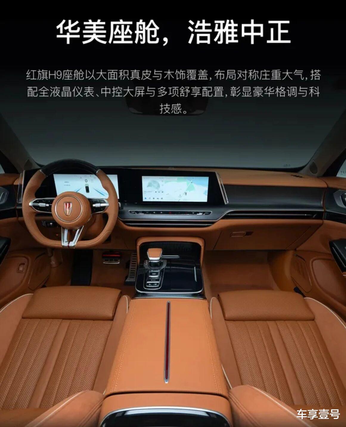 H9的车内同样是中式美学跟现代豪华的结合。环抱式的座舱以驾驶者为中心展开布局,配合不错的皮质用料,以及实木饰板的装饰,触感细腻柔软,看上去确实有行政车型的豪华氛围,后排更是有一种陆地头等舱的气息。