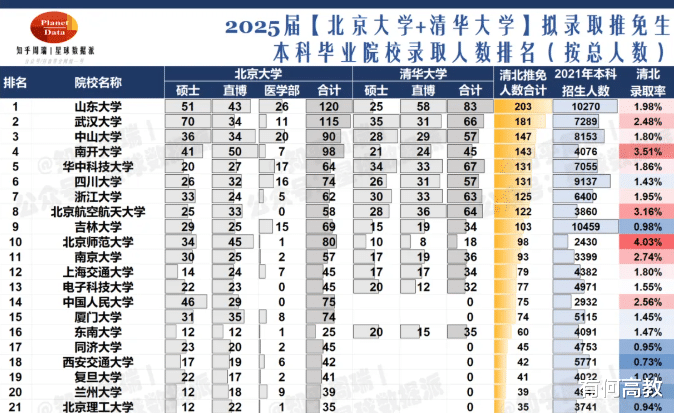 虽然相比于往届的27.3%有所下降,但主要是因为教育部对推免名额的结构性调整以及本科招生规模的扩大所导致的。尽管如此,这个数据也是仍显著高于全国平均水平,在 985 高校中处于中上游。