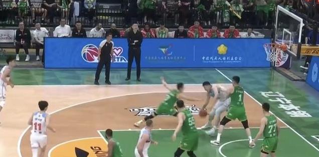 比赛还剩最后几十秒时,辽宁男篮的弗格再次持球进攻。