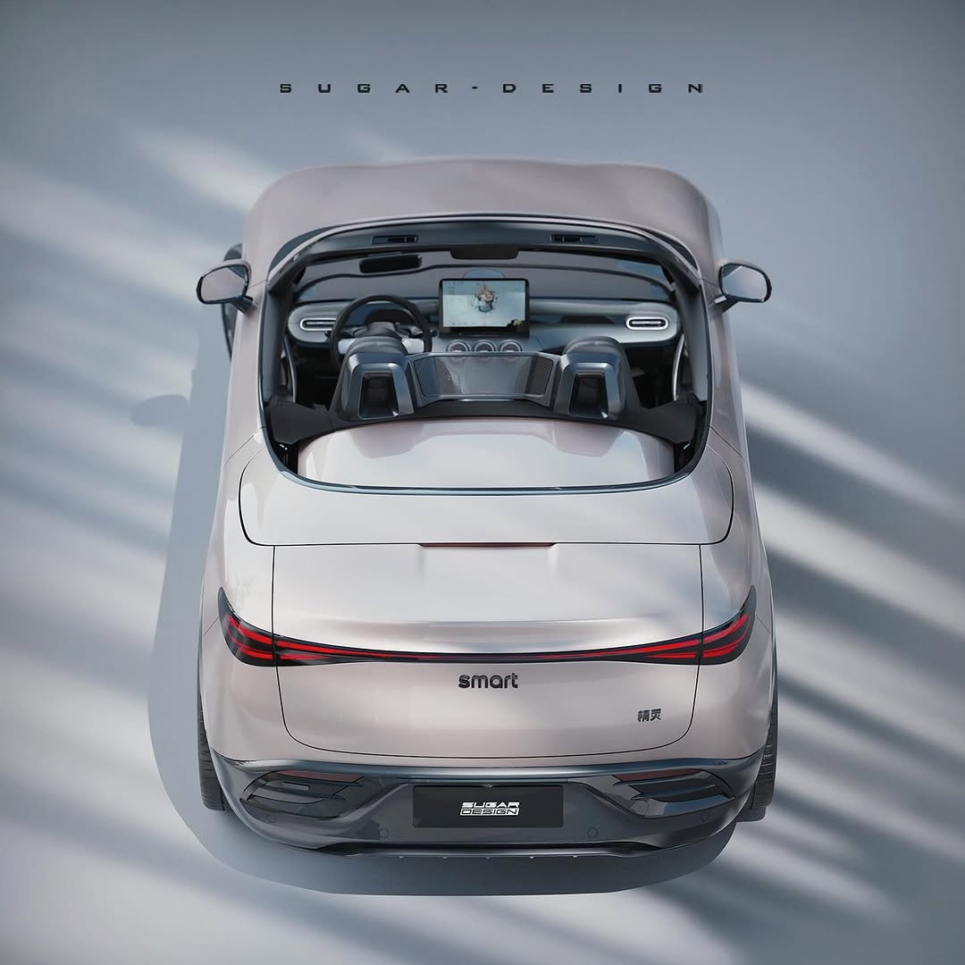 从图中可以看出,这款传闻中的 Roadster外观酷似一款缩小版的smart精灵#1,内饰设计与现款车型相比变化不大。尽管设计尚未得到官方确认,但这款虚拟的 Roadster 无疑让人眼前一亮。