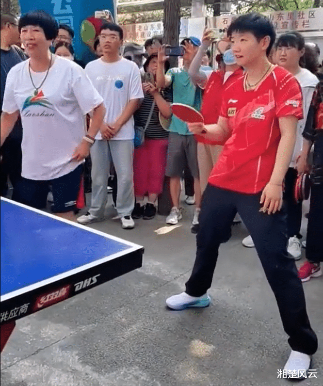 队员们出现在公园,当地市民自然要与他们切磋一番。国乒大咖王楚钦与孙颖莎受邀的次数比较多。