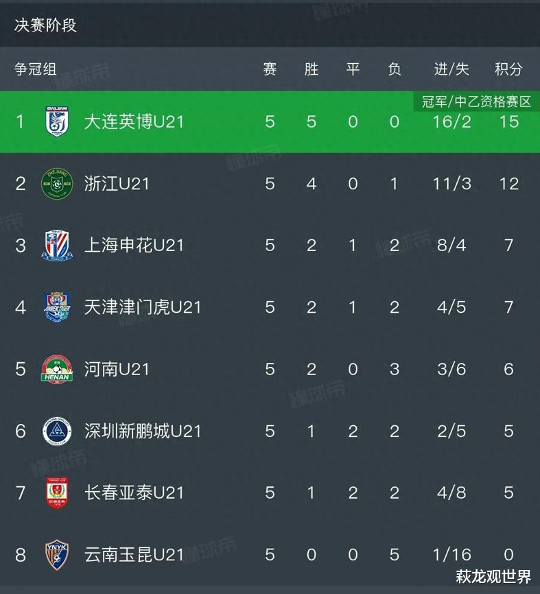大连英博U21在争冠组5战全胜,5场比赛仅丢两球,积15分,排名第一。联赛仅剩下两轮,如果两个对手是是天津津门虎和深圳新鹏城,拿下任意一场就将夺冠,会师大连涵瑀,两队争夺一个中乙联赛名额。本场比赛彭顺杰在后卫线上也很稳,几次解围都展现出一名优秀中后卫的潜质。