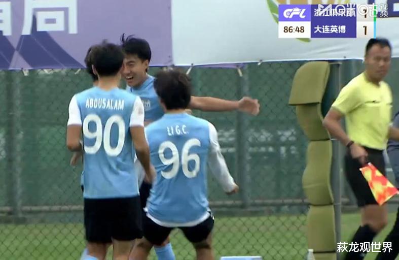 回顾此役三个进球,比赛第15分钟,浙江队田嘉豪右路一次传中,直接将皮球传进了英博球门,大连英博0-1落后,但是并没有乱掉阵脚。第20分钟,大连英博通过前场拼抢断下了球权,随后传给头牌射手朱鹏宇,后者获得单刀机会,面对霍深坪冷静施射破门,英博将比分扳为1-1平。
