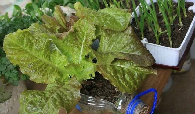 同样的,喝完的矿泉水瓶,从侧面开个口,也能用来种植生菜。