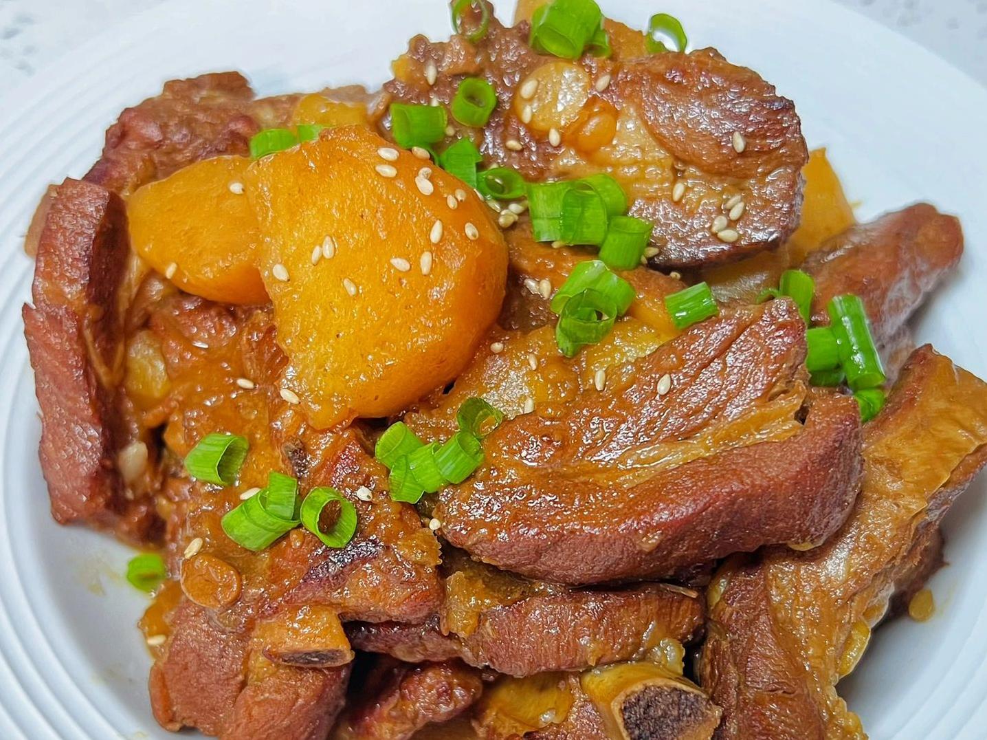 软糯多汁的土豆烧排骨最后一道是土豆烧排骨,这道菜做起来稍微费时间,但绝对值得。