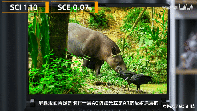 还有在色温均匀性方面,默认整体色温在 6700 - 7200K,最大偏差 603K,略高的色温更符合国内玩家偏冷色温的喜好。屏幕表面处理细腻,SCI 反射率 1.10,SCE 反射率 0.07 ,表面的 AG 防眩光或 AR 抗反射涂层,让屏幕反射比普通 OLED 和 IPS 笔电都弱。再加上相位补偿膜,30° 偏转下亮度衰减仅 47%,水平 30° 白点色偏 1.16 个 JNCD ,在 30° 以上偏转时白点色偏在笔电中领先,可视角度接近 50° 时对比度仍能达到 250:1,远超其他主流游戏本。