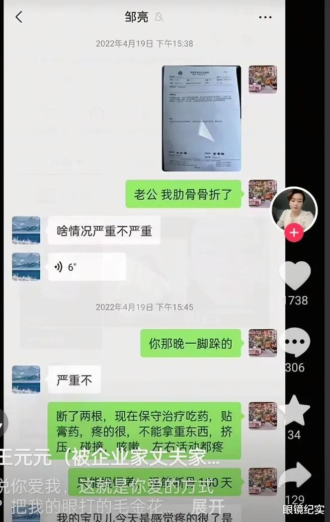 王元元,一个普通的河南女子,本以为婚姻会是幸福的港湾,却没想到,这成为了她长达七年的噩梦。她的丈夫邹亮,一个事业有成的企业家,在外人看来光鲜亮丽,却在家中化身恶魔,对她实施长达七年的家暴。拳打脚踢、烟头烫伤,甚至在她怀孕期间也毫不手软,这简直是让人无法想象的残酷。肋骨断裂,伤痕累累,这些只是她遭受的皮肉之苦,而精神上的折磨,更是难以言喻。