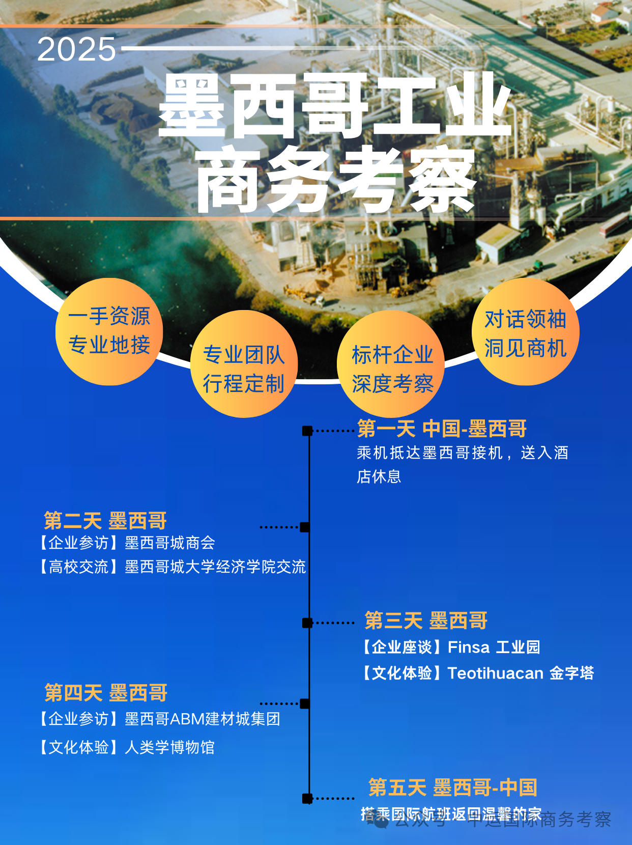 墨西哥工业考察 | 行程分享🎆墨西哥工业考察 | 行程分享🐏企业参访日程安排👉墨西哥城商会👉墨西哥城大學經濟學院交流👉Finsa 工业园👉墨西哥ABM建材城集团🥗海外商务考察目的🧪管理模式探索🧪企业战略规划🧪科技成果转化🥦企业考察的注意事项🍏确定清晰的参访目的🍏了解考察企业的背景和战略方向🍏及时总结和分析🥬更多企业参访有必要吗、企业考察报告模板、商务考察流程、商务考察团、行程路线攻略、海外标杆企业参访、企业参访穿搭、企业参访话术等精彩内容持续更新分享中!