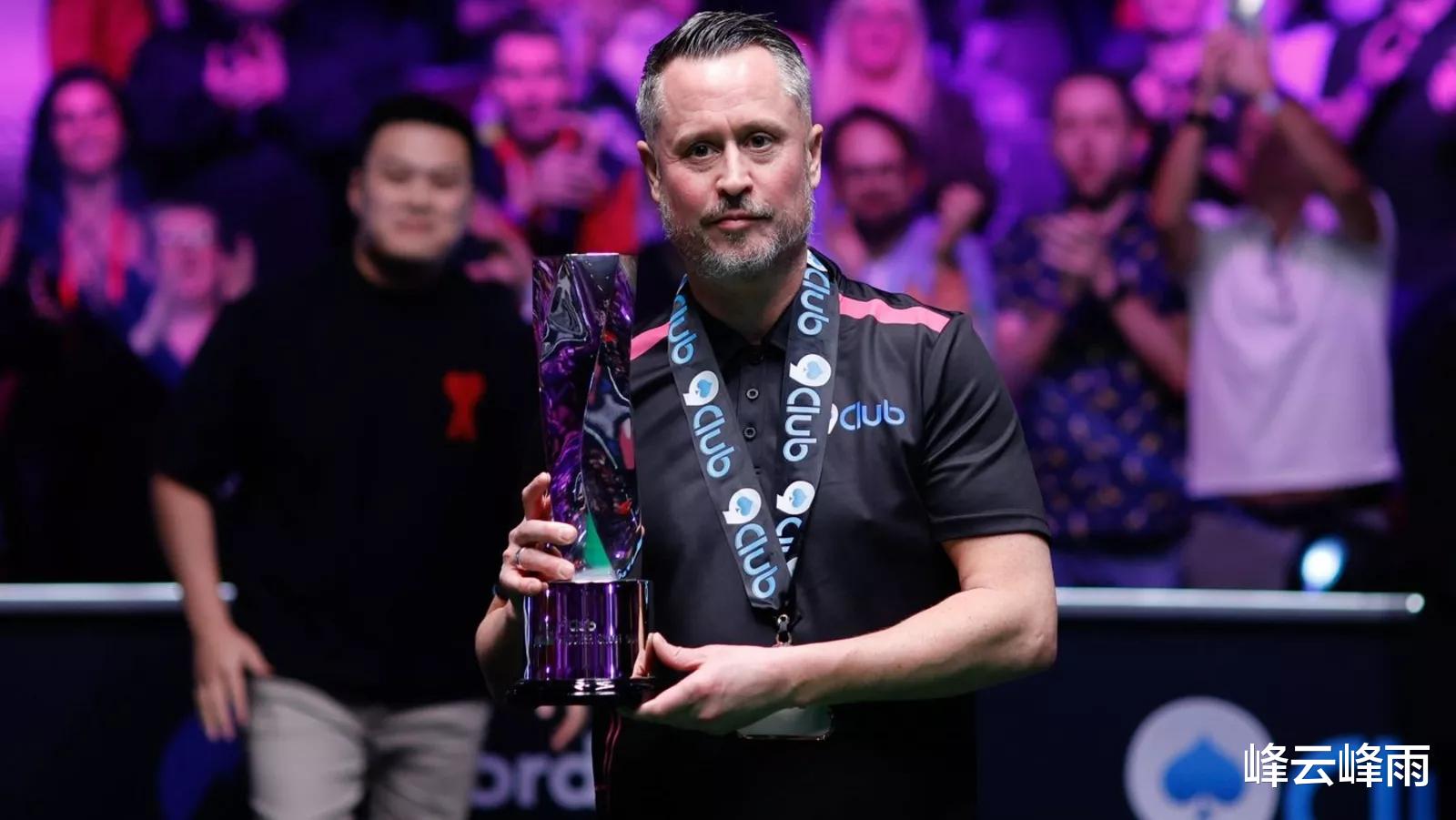 阿尔菲·伯登捧起2025年斯诺克单局限时赛冠军奖杯