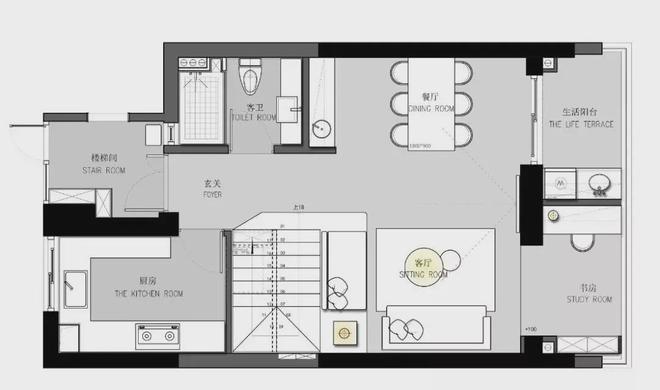 这套复式房子的面积大概是135平,整体空间以现代简约风格的设计,在高级灰色色调基础,布置现代舒适的家具与细节,营造出一种回归本身的自然与轻松居住感。