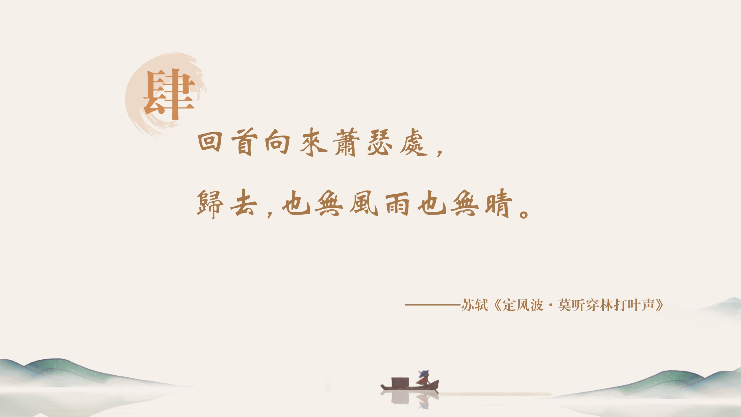 超然的心态,即回顾过去的困难和挫折,归去之后便觉得风雨无阻、平静如常。它表达了一种豁达、淡泊名利的心态,以及对过去的平静接受。